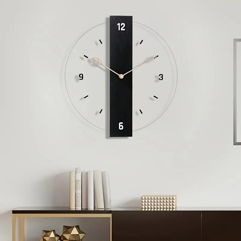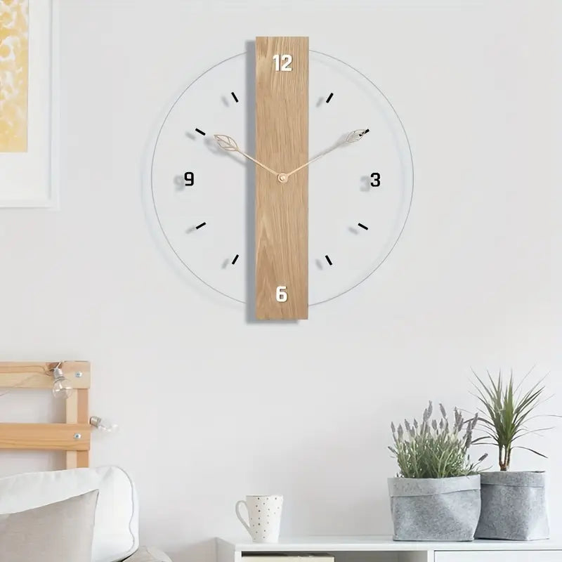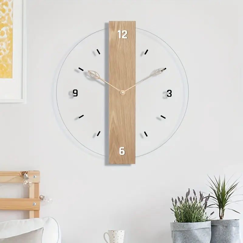 Silent Acrylic Wall Clock With Wood Grain Leaf Design Transparent No Ticking For Living Room Bedroom Kitchen Office Decor
