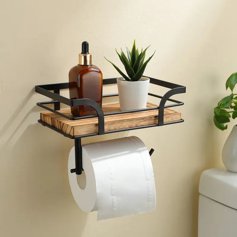 Wall Mount Toilet Paper Holder - Wood, Spare Roll Storage
