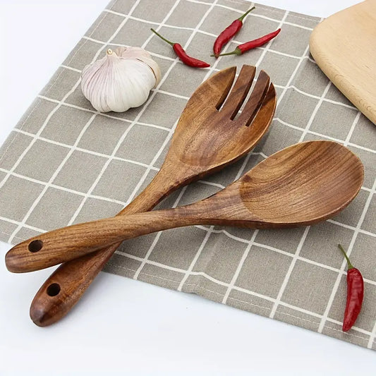 7PCS Wooden Cooking Utensils – Heat-Resistant Tools for Salad & Pan Cooking