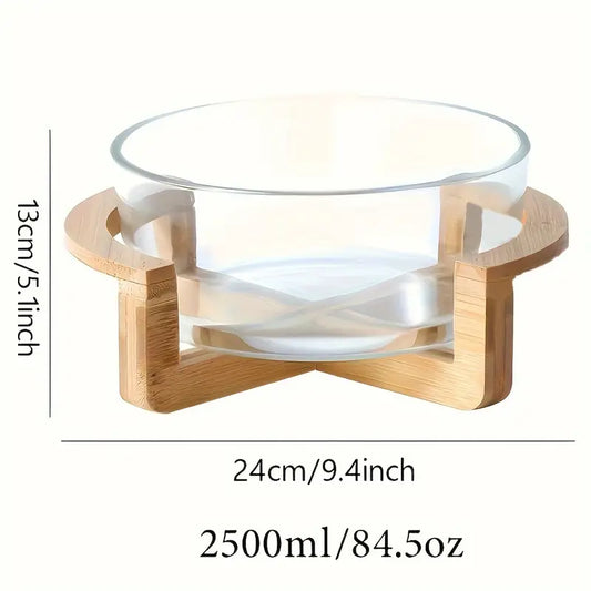 Glass Fruit Bowl with Bamboo Base – Stylish Snack or Salad Display Dish