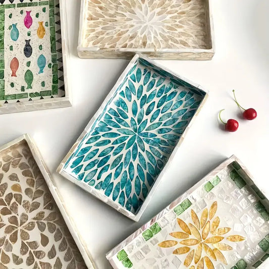 Hand-Painted Resin Tray – Abstract Colorful Holiday Centerpiece Table Decor