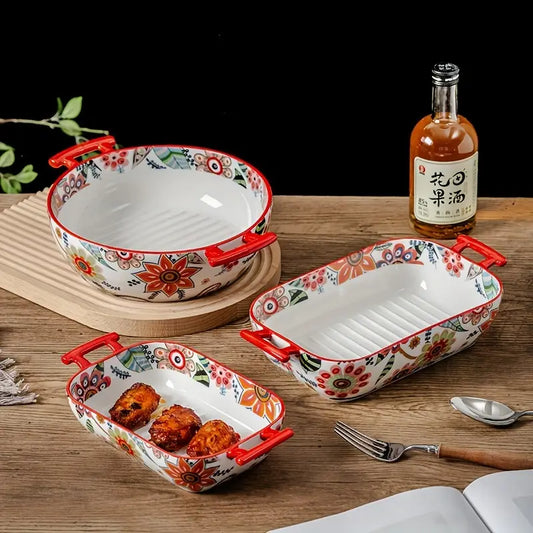 Flower Ceramic Baking Set – Cake Pan, Muffin Cups, Pizza Plates for Holidays