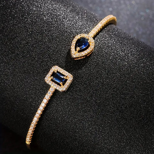 Zircon Cuff Bangle - Women's Geometric Jewelry