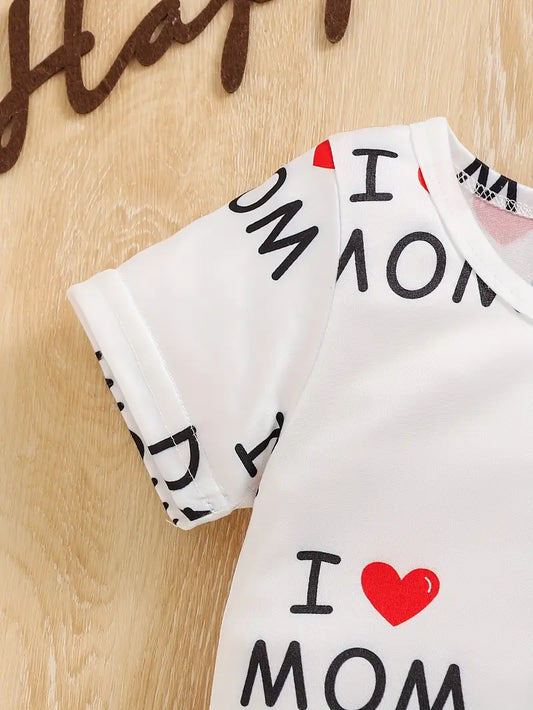 'I Love Mom' babyrompertje | Allover print rompertje met korte mouwen voor jongens