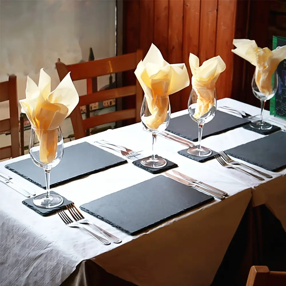 2-pack zwarte leistenen schalen met 2 krijtstiften