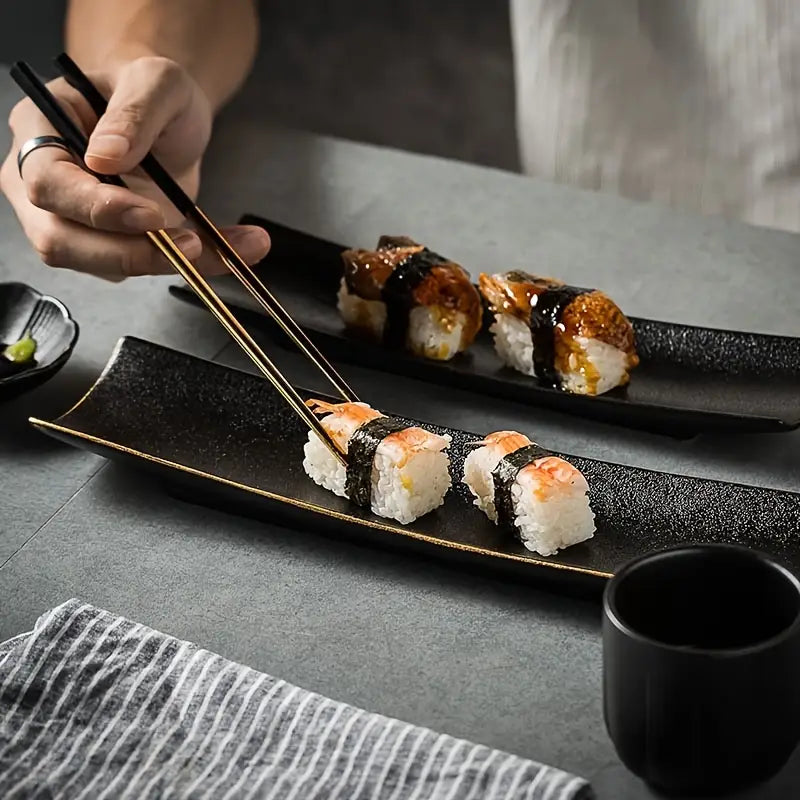 2PCS Japanese Sushi Platters - Long Rectangular Ceramic Plates for Sushi, Fish, BBQ, or Dessert - Elegant Asian-Inspired Tableware