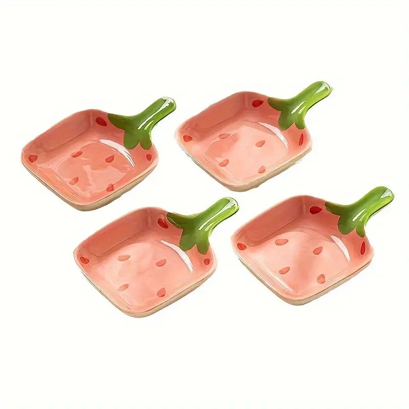 2PCS Strawberry Sauce Dishes – Handled Ceramic Plates for Snacks & Cheese