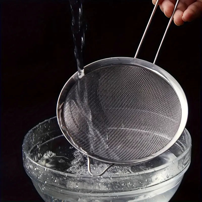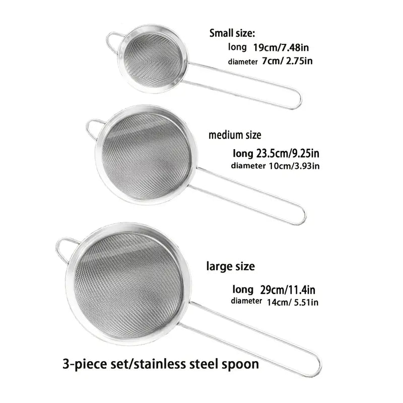 3-Piece Stainless Steel Kitchen Strainer Set - Versatile Colander and Ladle Set - Ideal for Flour, Oil Filtering, Cooking Essentials