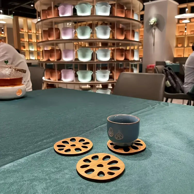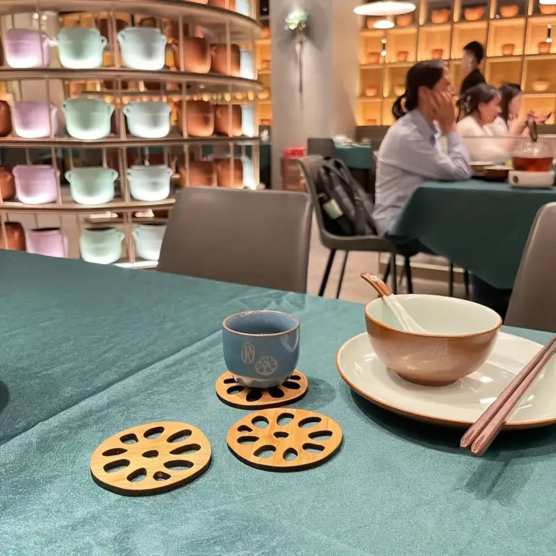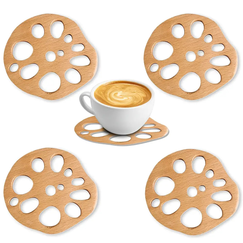 4 stuks lotusvormige houten onderzetters. Materiaal: hout, artikelnummer: DR596544