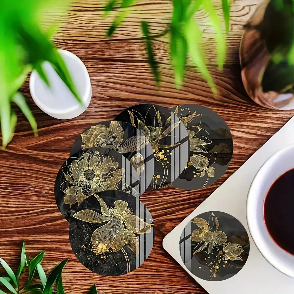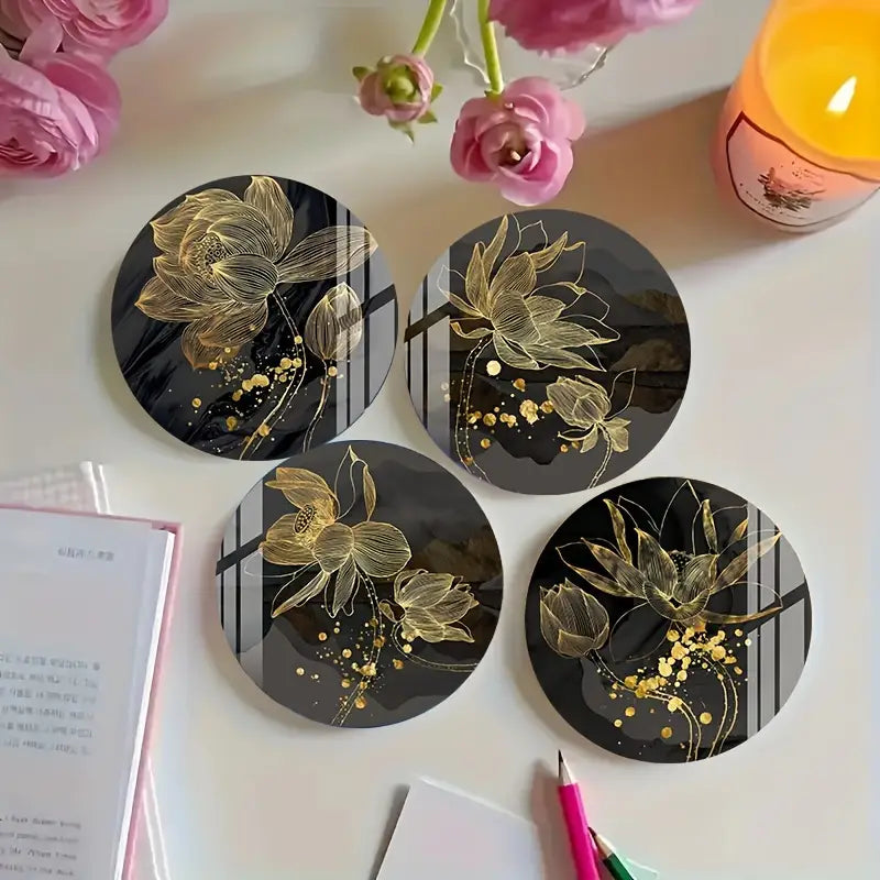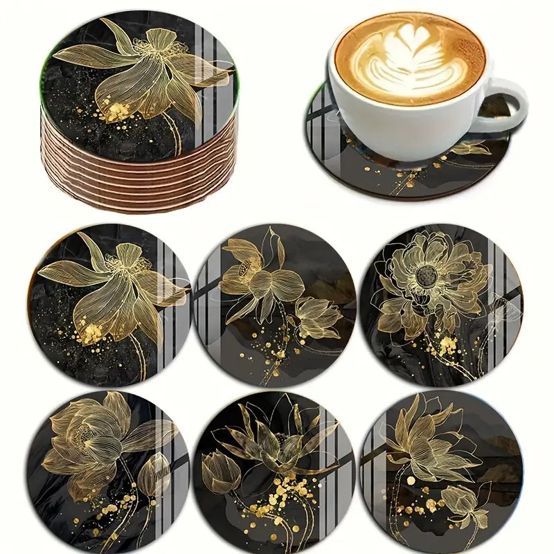 Set van 6 charmante vergulde houten onderzetters in lotusstijl