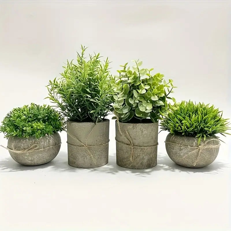 Pack of 4 Small Artificial Plant Statues for Bathroom Decoration, Indoor Artificial Plants, Eucalyptus Rosemary for Home Kitchen Office Decor