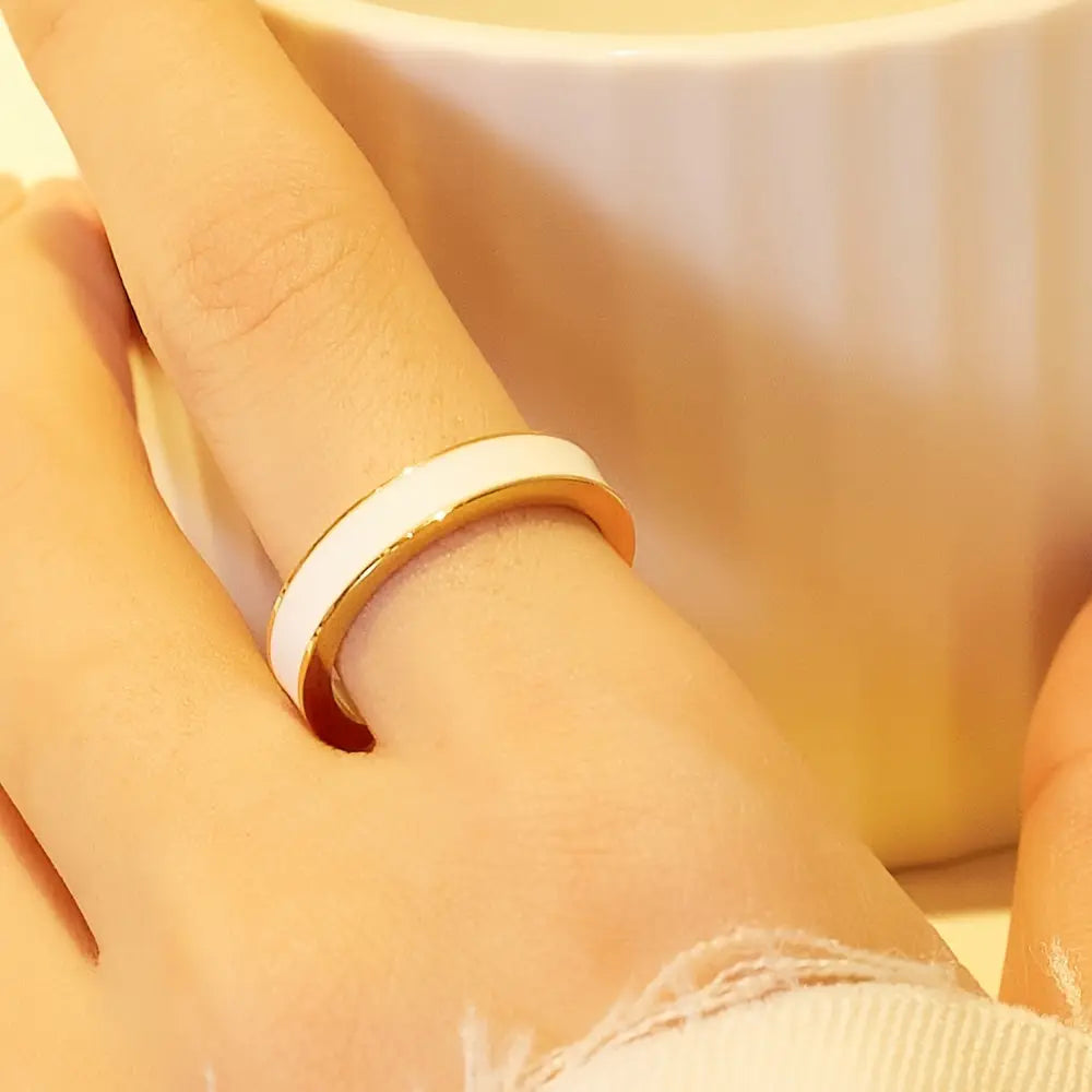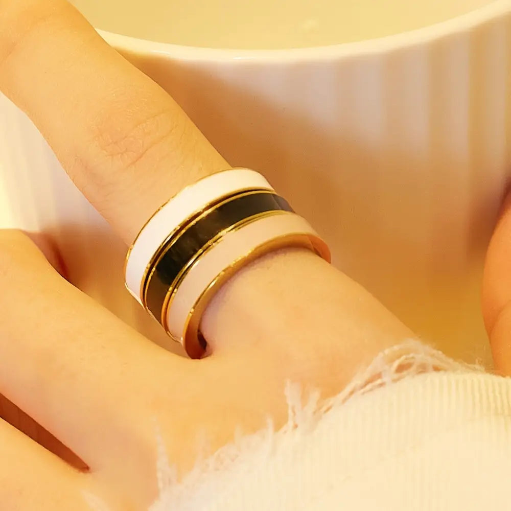 Klassieke 18K vergulde ringen met zwart-witte harsinleg