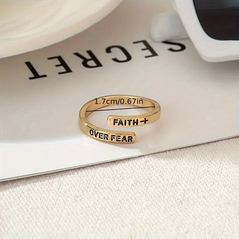 Inspirerende, verstelbare ring voor dames met gegraveerd "Faith" kruis