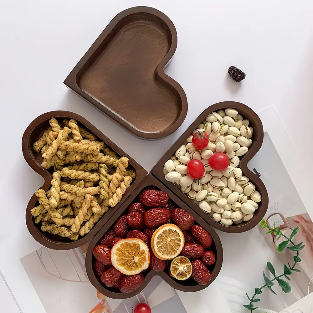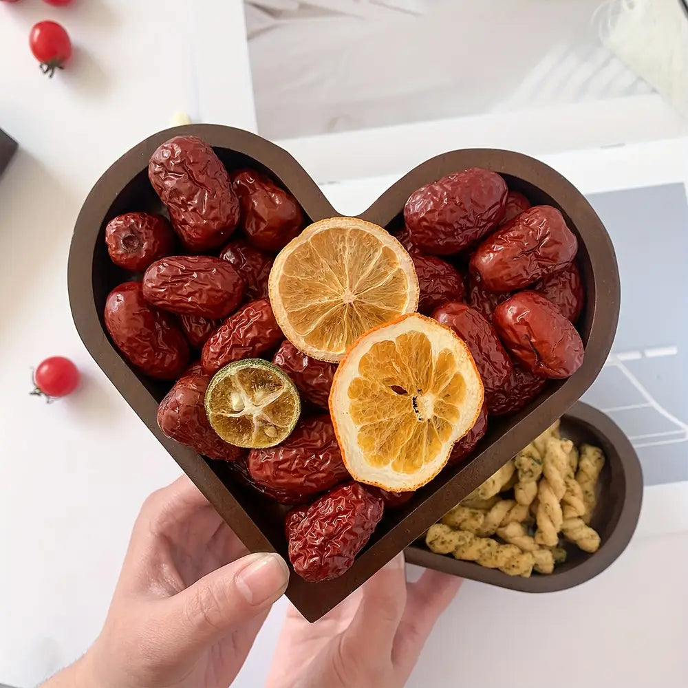 1/4 stuks rustieke houten serveerschaal in hartvorm, stapelbare schaal voor gedroogd fruit en noten