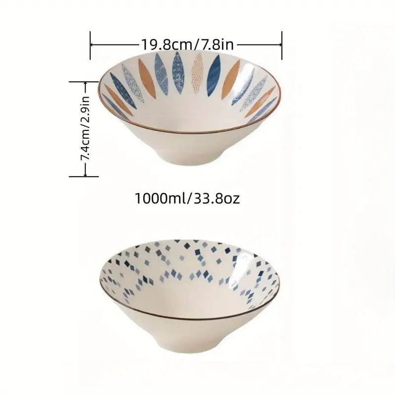2PCS Japanese High-Leg Bowls – Large Ceramic Ramen & Salad Bowls Set