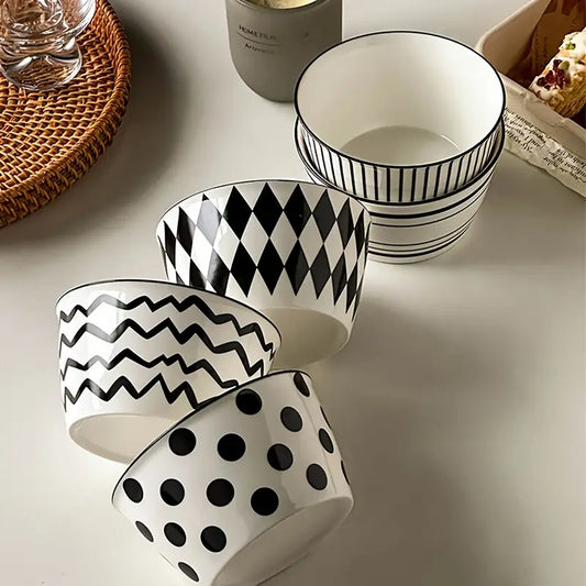 Black Ceramic Bowl Set - Modern Salad Rice Cereal Bowls (5pcs)