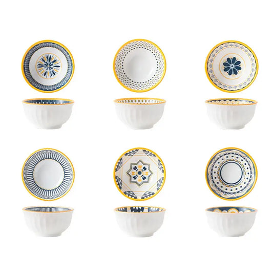 Bohemian Ceramic Bowls Set - 6pc Porcelain Soup Salad Gift
