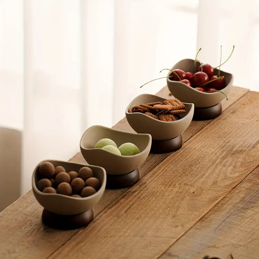 2PCS Glass Fruit Bowls with Wooden Base – Elegant Salad & Snack Bowl Set