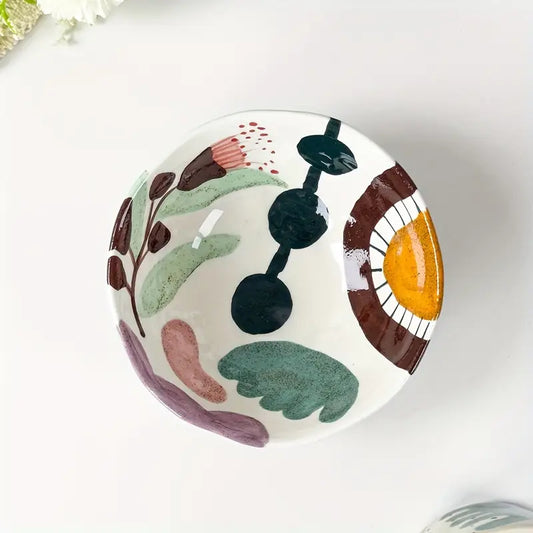Bohemian Ceramic Bowl - Hand Painted, Colorful Tree Design