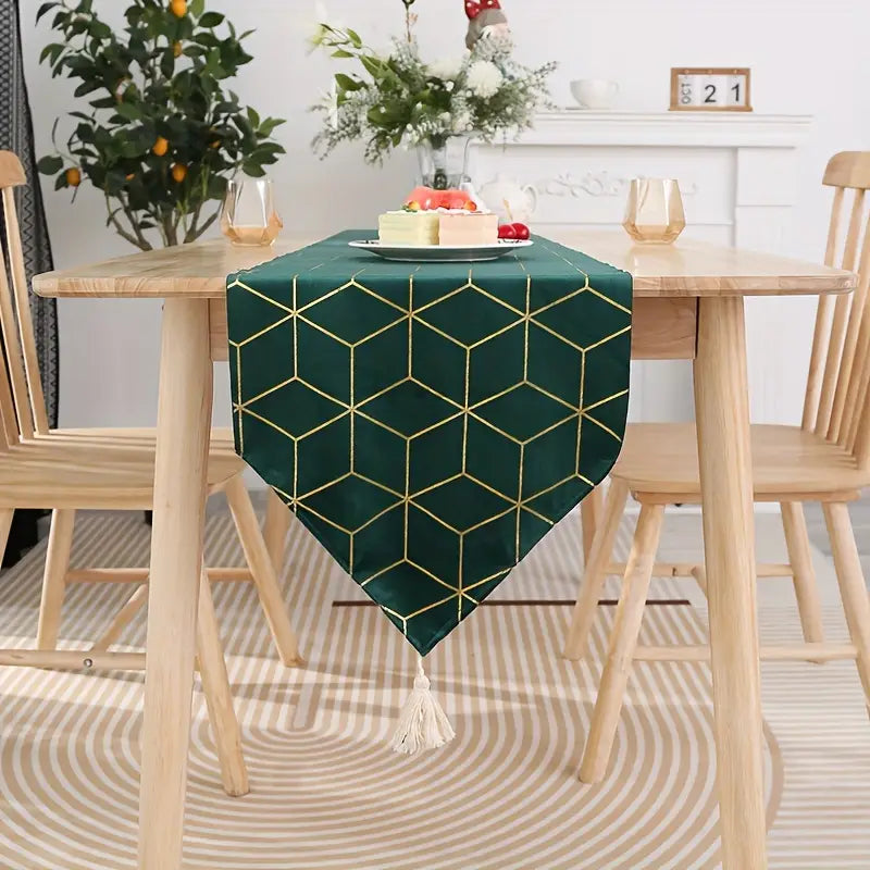 1 stuk groene prismatische vergulde tafelloper met kwastje