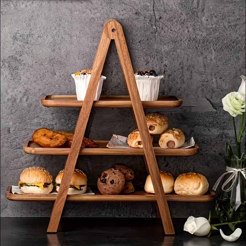 3-laags houten taartstandaard - veelzijdige presentatie van fruit, cupcakes en brood