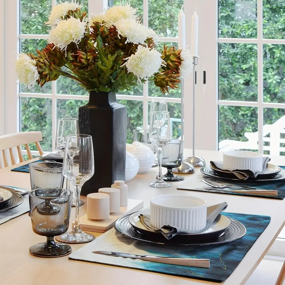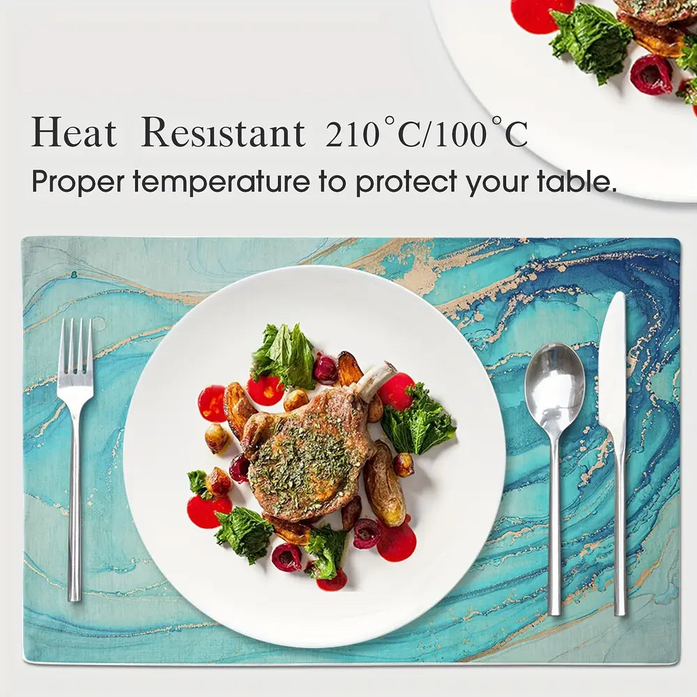 4 stuks moderne placemats met abstracte kunst. Gebruiksaanwijzing: Machinewas, Vorm: Rechthoek, Feestdagen: Thanksgiving, Materiaal: Polyester, Materiaal hoes: 100% Polyester, Weefmethode: Geweven, Artikel-ID: TE24205