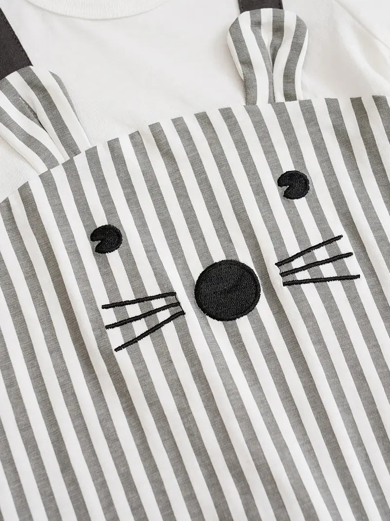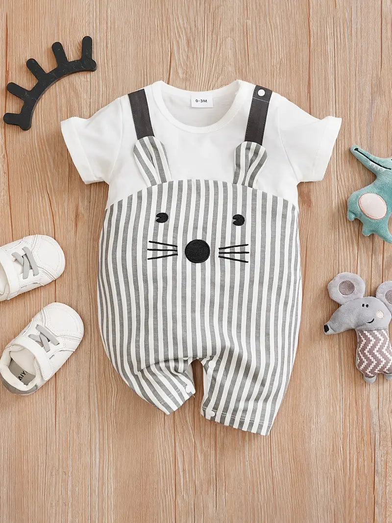 Super schattige cartoon dierenmuizenprint baby jongens jumpsuit met lange mouwen, geschikt voor binnen- en buitengebruik