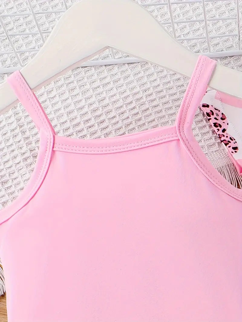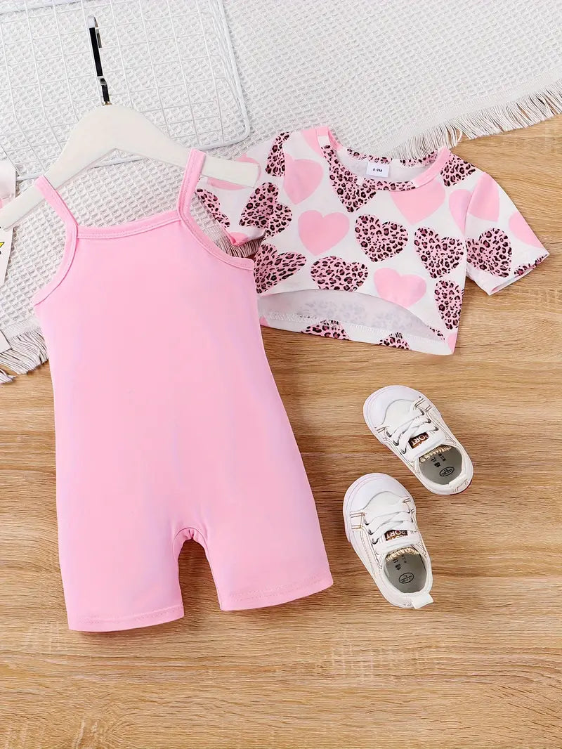 Set van crop top en romper met luipaardprint en hartjesprint | 2-delige zomeroutfit voor peutermeisjes