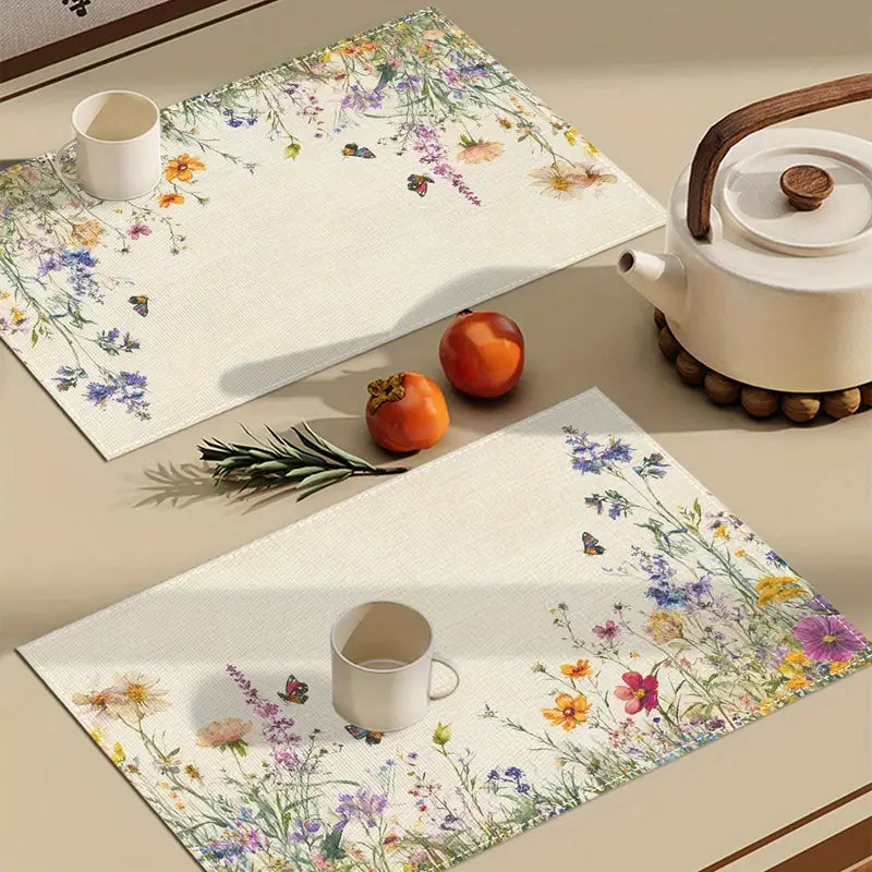 4PC Wildflower Print Placemats – 30x45 cm Washable Waterproof Dining Mats