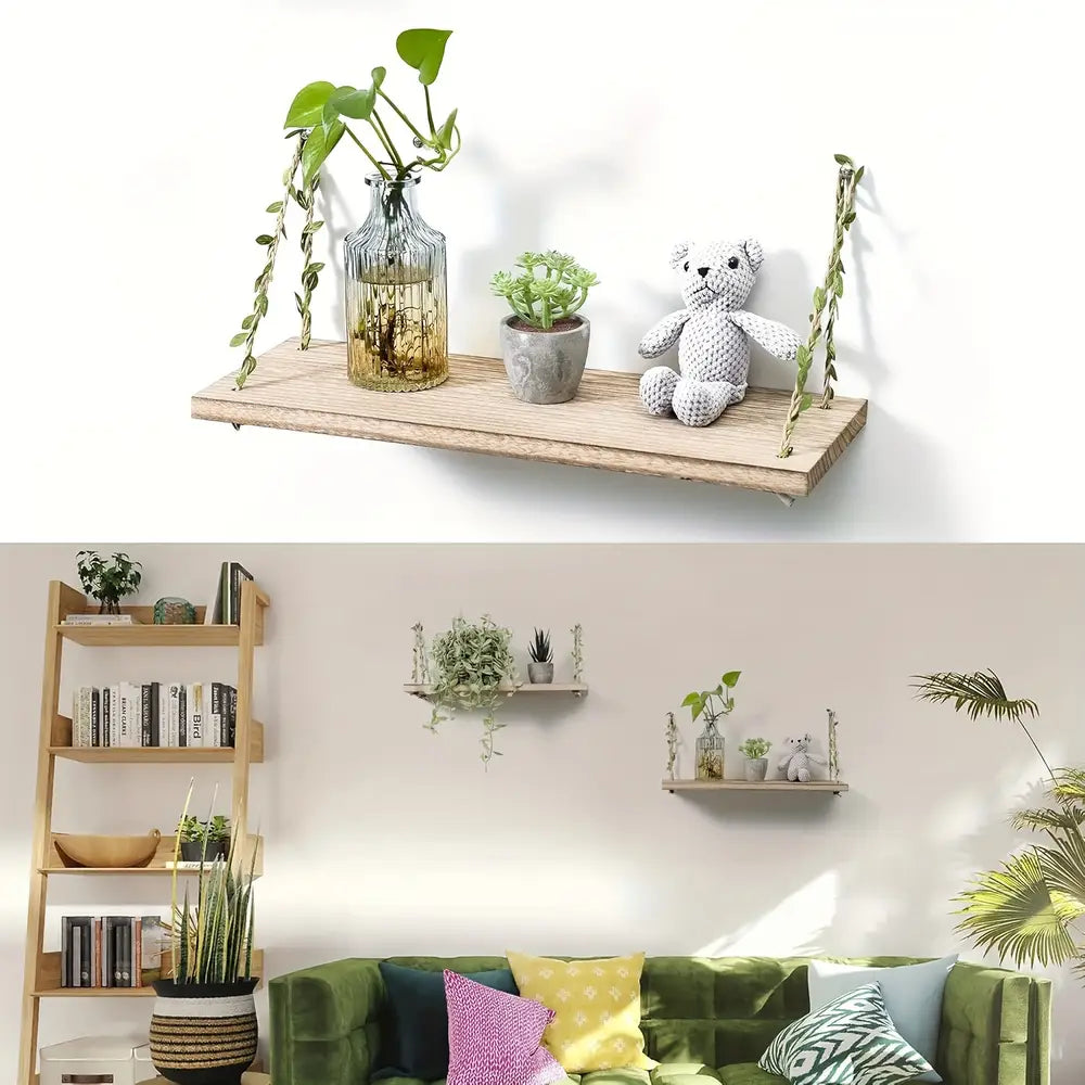 2-Pack Bohemian Style Floating Shelves Rustic Wooden Wall Mounted Storage