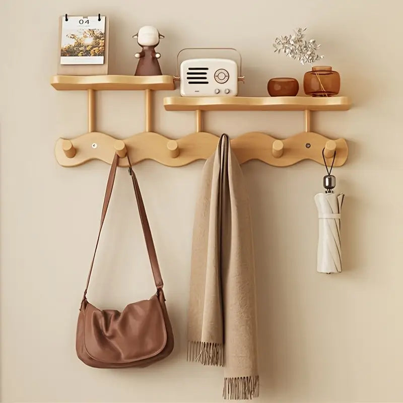 Bamboo Over-Door Coat Rack - Wall Mount Shelf Organizer