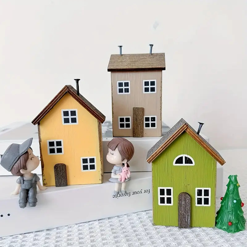 Miniature Wooden House Ornament - DIY Cabin Model Home Decor