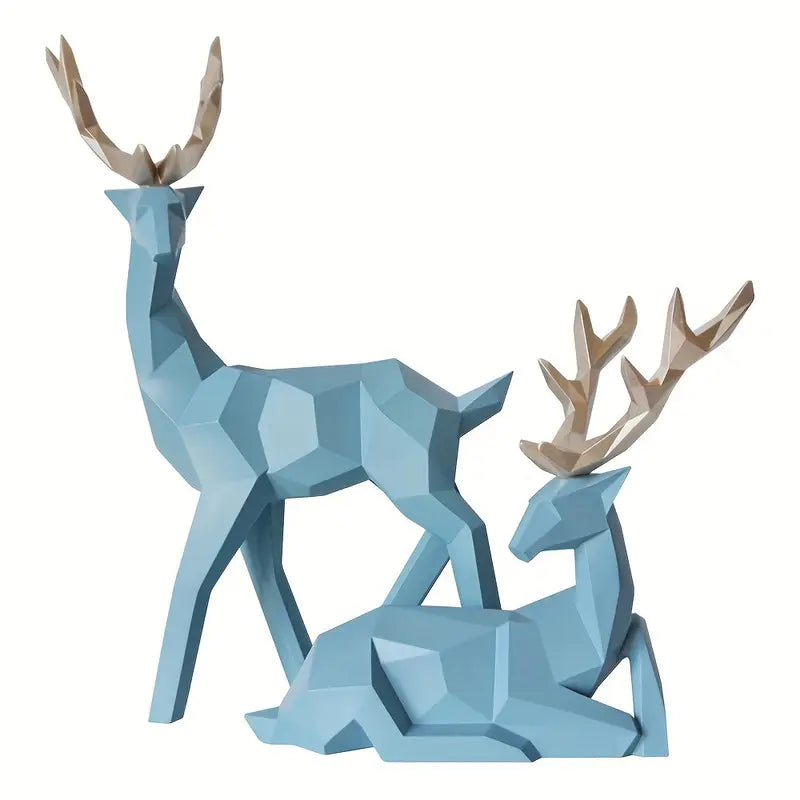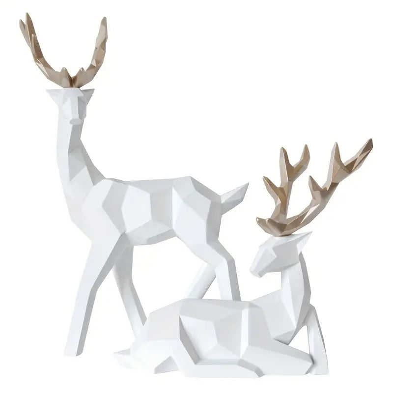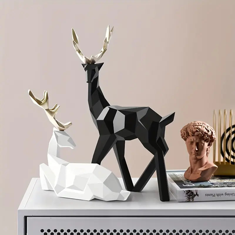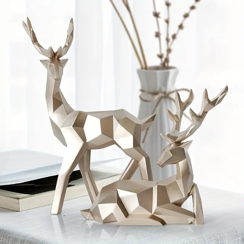 Resin Deer Statues - Geometric Decor for Shelf or Cabinet