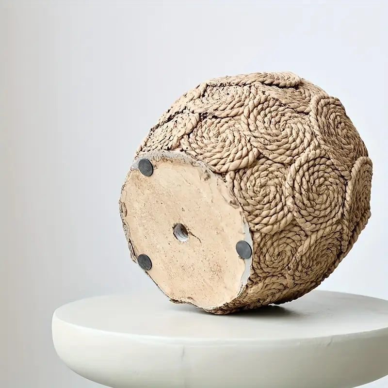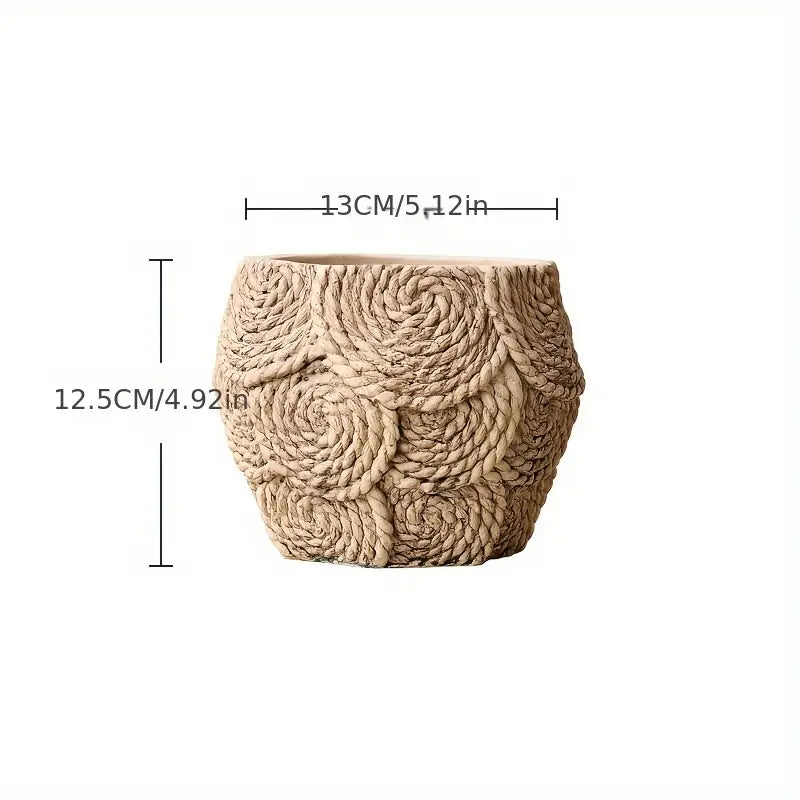 Rustic Cement Planter - Woven Design, Drainage, Indoor/Outdoor