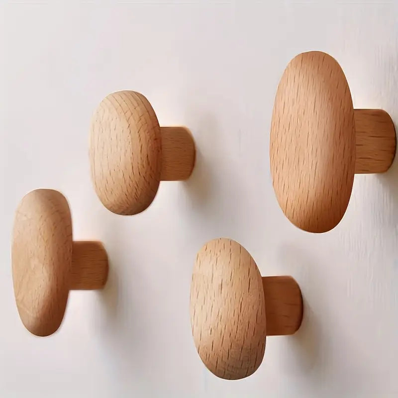 4Pcs Set Walnut Wooden Wall Mounted Coat Rack Fashionable Handcrafted Wood Hanger For Backpacks Towels Hats Sturdy Wall Mount Coat Storage